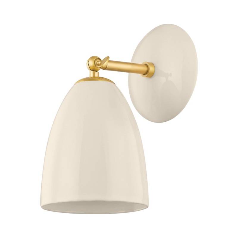 An inspired look of fresh casual attitude embellishes the Kirsten Wall Light from Mitzi, creating a shapely and tasteful light source ideal for a bath or living space. A relaxed aesthetic results from glossy cream finish ceramic with a matching circular wall mount. Lush aged brass metal glams up the statement-making look with a dose of elegance.