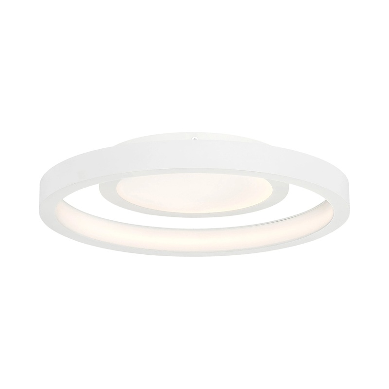 White finish and acrylic diffusers on the Knock Out LED Flush Mount Ceiling Light from George Kovacs encourage understated, modern elegance for its double ring motif.
