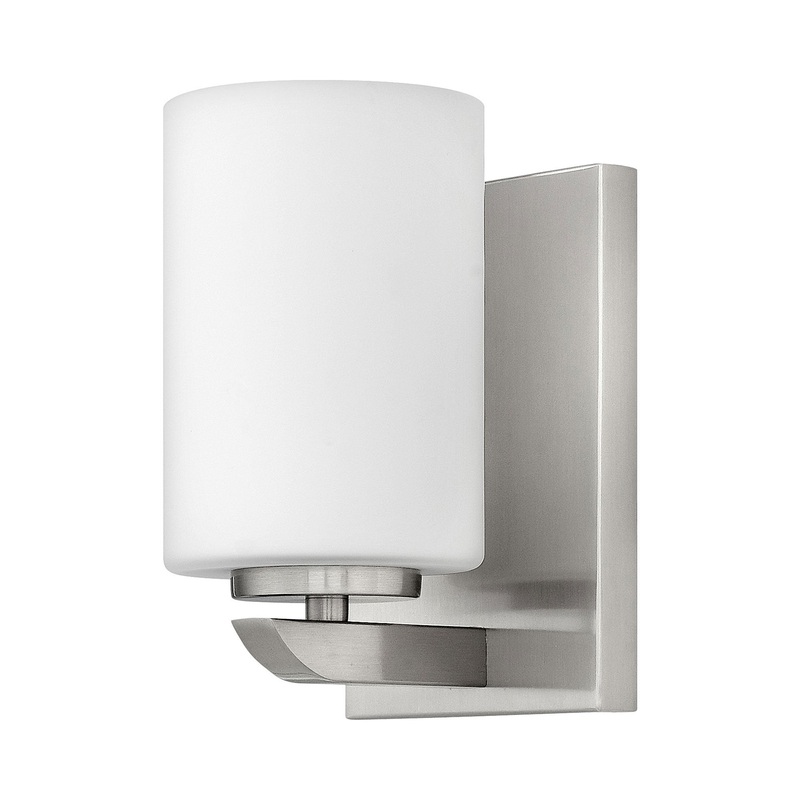 Clean and crisp, Kyras minimalist design is anchored with a bold yet simple aesthetic. The sleek cross bar ends with a subtle curve for an element of softness. Rich finish options of Brushed Nickel or Polished Nickel complement the elegant etched opal glass.