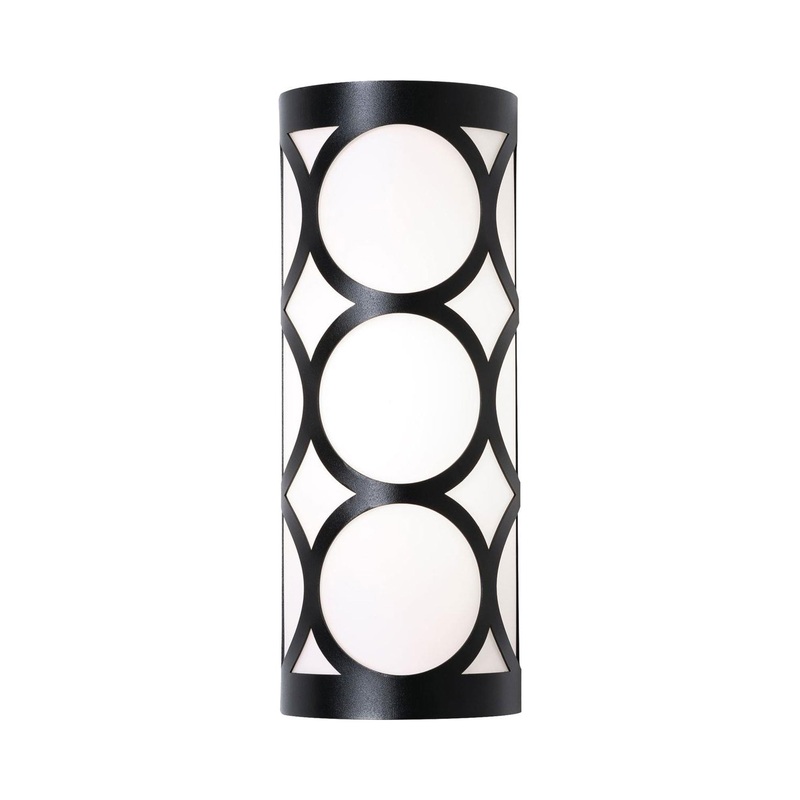 OverviewWhimsical circles bring a geometric motif to lighting in a transitional space, with a festive result. The Lake LED Wall Light from AFX Lighting features openwork aluminum framing with a cylinder acrylic diffuser spreading glowing, energy-efficient