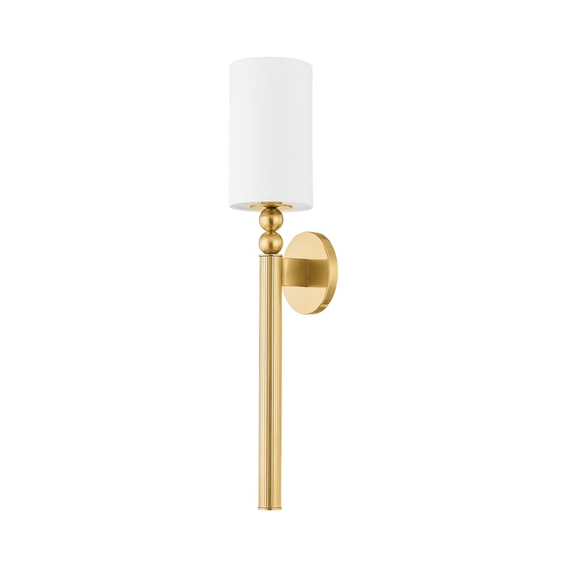 Proportionality steals the show in a light fixture design with classic roots. Revel in simplicity as the Lakeport Wall Light from Hudson Valley Lighting features a thick metal stem with charming ball elements and a round wall plate. Topped with a slender and tall drum shade, this wall light delivers an approachable aesthetic.