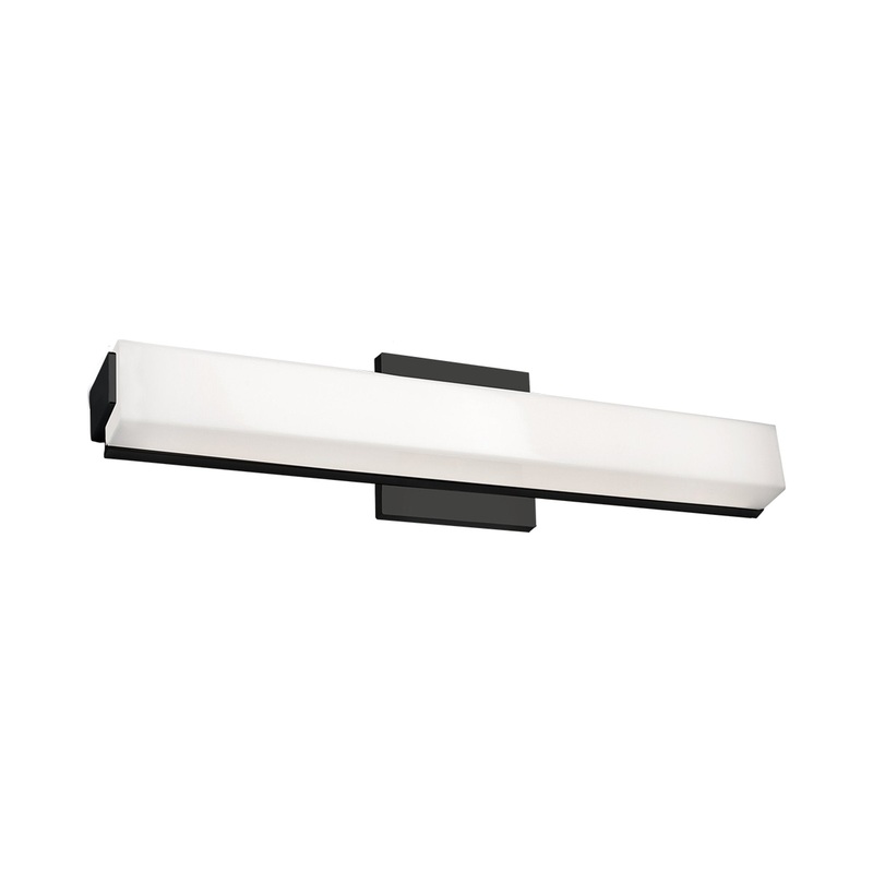 An extruded rectangular diffuser surrounds the LED source of the geometric vanity fixture. Capped by two thick offset squares the design is characterized by minimal details and clever features. During installation the lamp assembly may slide on the mounting track to allow for ideal positioning. Adding to the versatile function are the multiple fixture lengths and mounting orientations. Optional installation without backplate for smaller junction boxes.