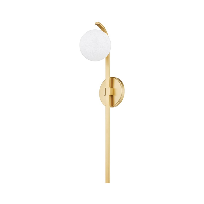 A spunky and festive design flavor reflects old and new in interior lighting with a twist. Bring a celebratory style to a modern space with a retro-inspired fixture in the Laval Wall Light from Hudson Valley Lighting. Reminiscent of a solo pearl earring, this gem-like light blends a sensually curved metal arm with a clear glass globe etched on the inside to magnify its sleek impact.