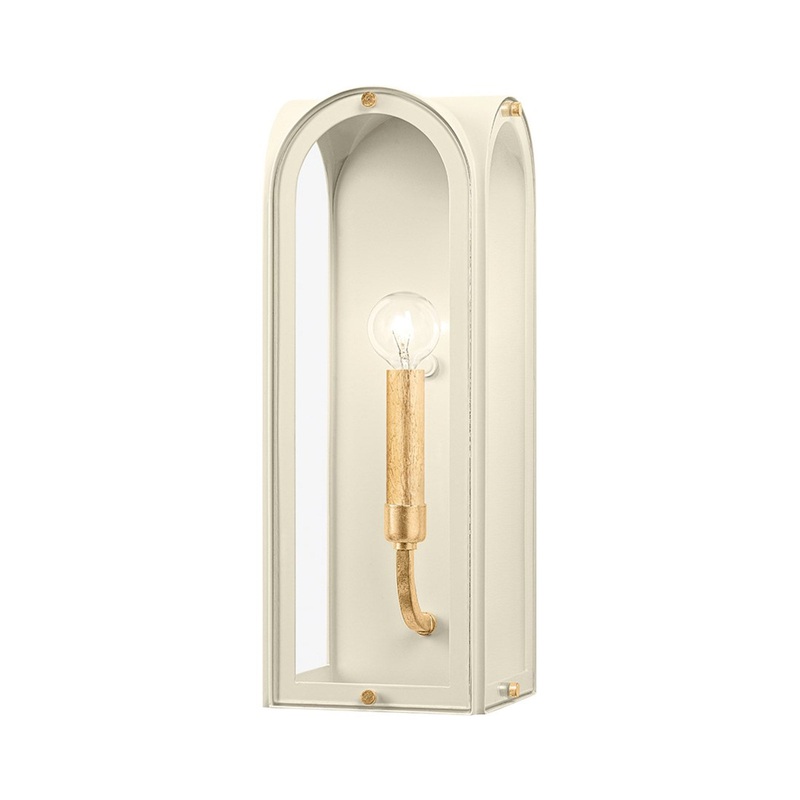 Traditional lantern aesthetics translate to a fresh new look in interior lighting as the Lincroft Wall Light from Hudson Valley Lighting plays it safe with just enough glam to make a statement. Soft sand finish metal cage framing showcases a chic candelabra light fashioned of rich vintage gold leaf metal. This wall light becomes a focal point in any hallway or living area.