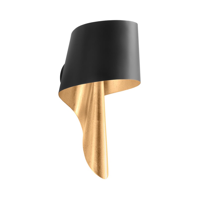 Make a definitive statement of nouveau design with the Lucia Wall Light from Corbett Lighting. Dramatic and sculptural with a wrapped and curled silhouetting, this fixture is reserved for the most exclusive settings. Vintage gold leaf and soft black finishes coat an exquisite art form, embellishing illumination.