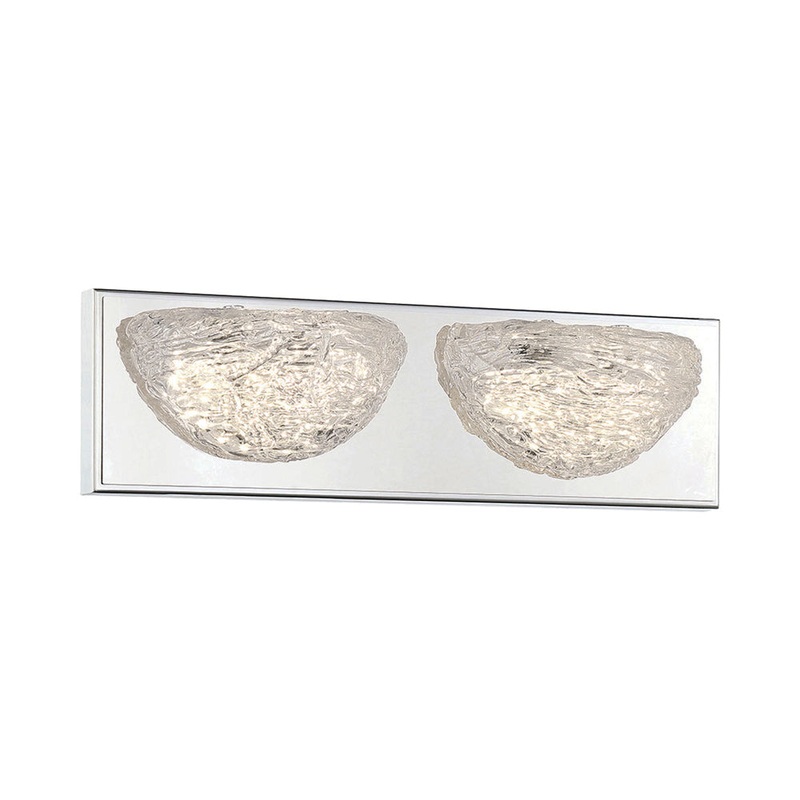 The glam look of frosty ambiance plays out in sophisticated style in a bath fixture with the power to captivate. The Modern Ice LED Vanity Wall Light from George Kovacs frames a vanity, adding decadence with its textured clear artisan glass shades and gleaming chrome finish metal backplate. Transform the entire aesthetic of a new or repurposed master suite with this exquisite, energy-efficient fixture.
