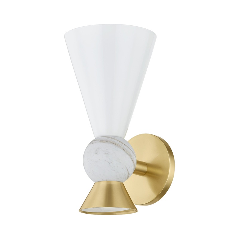Reach new heights in decadent lighting dcor, choosing the Mona Wall Light from Mitzi to make a signature style statement. A throwback to Mid-Century Modern fare, this creation is also perfectly modern and versatile, with metal framing and conical shapes dressed up by a chic marble ball ornament.