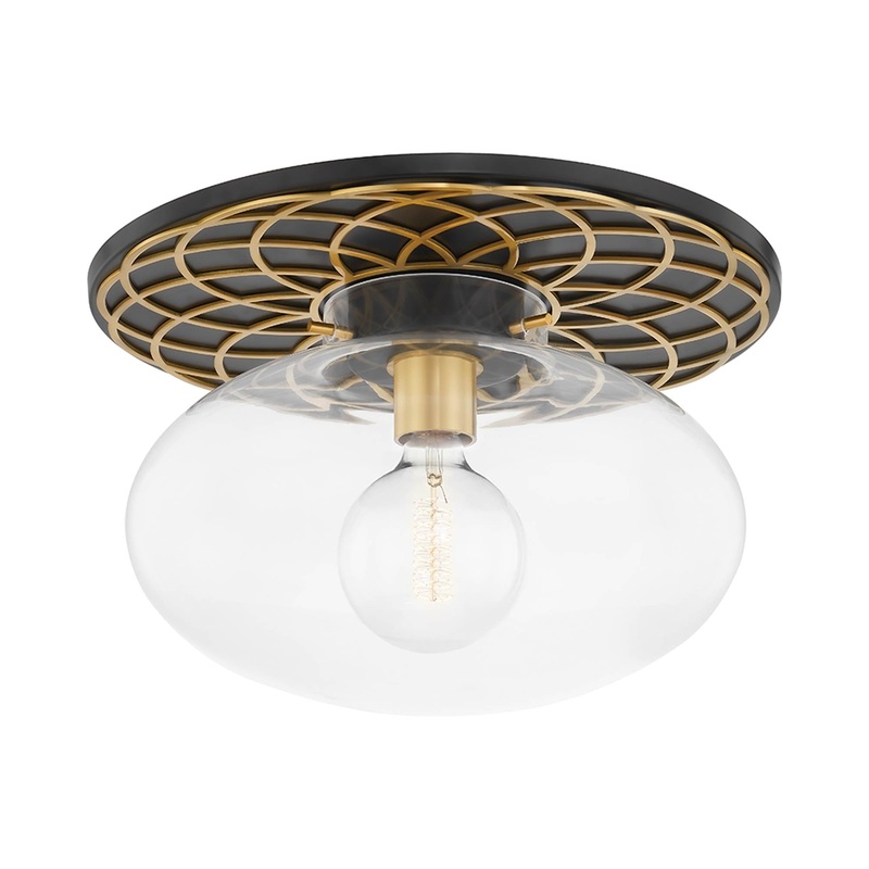 Lace-inspired elements embellish the metal canopy of an elegant fixture, blending with a delicate clear glass shade in the New Paltz Semi Flush Mount Ceiling Light from Hudson Valley Lighting.