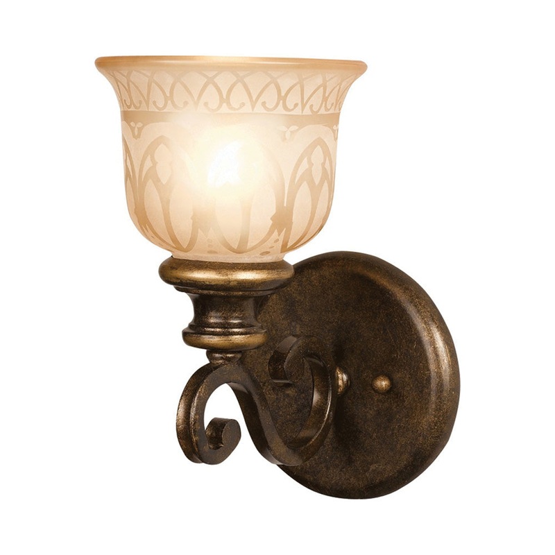 Subtle patterning on warm amber glass magnifies the rich beauty of a traditional light fixture that will fulfill your every wish. With dramatic bronze umber metal framing, the Norwalk Wall Light from Crystorama is masterfully engineered to focus on detail and shaping, boosting the gallery creds of a standout light source. Choose this sconce to reflect your signature design style.