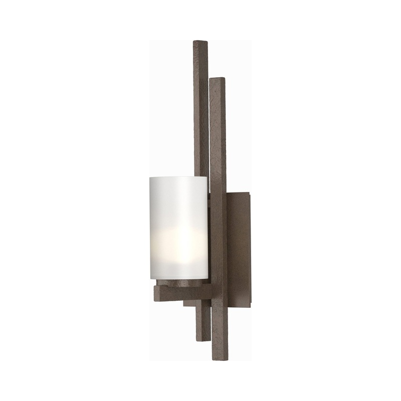 OverviewHand-worked steel delivers texture and bold presence to the Ondrian Wall Light from Hubbardton Forge. Its graceful, linear presentation contrasts beautifully with a cylindrical opal glass shade that assures true, diffused illumination. Its double b