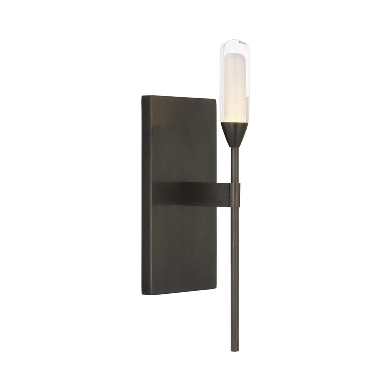 A pared down design motif captures iconic style worthy of a transitional dcor scheme. Metal construction dominates the sophisticated look of the Overture LED Wall Light from Visual Comfort Signature, embellishing conventional vibes with an extra-long stem capped with a chic clear glass shade.