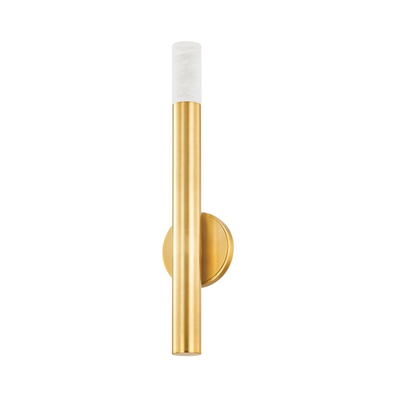 Essential style elements limit themselves to a functionally linear orientation, yet glam inspiration has a different plan for the exquisite Pali Wall Light from Hudson Valley Lighting. Embrace rich, gleaming aged brass finish metal that forms a candle sleeve capped with a charming natural alabaster element. Soft, radiant illumination results from a wall fixture that offers a sophisticated complement to modern living rooms and hallways.