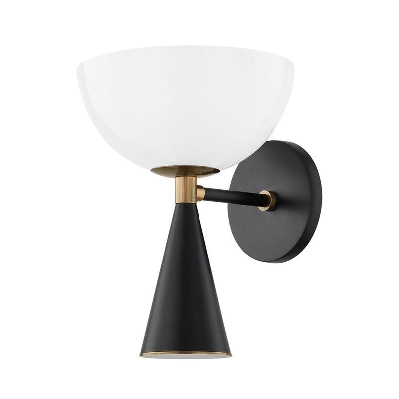 OverviewCheeky studio style shows itself in a statement-making fixture ideal for themed living spaces. The Payson Wall Light from Troy Lighting leans on contrast and shaping with a glam clear glass dome shade topping a conical metal neck with a soft black