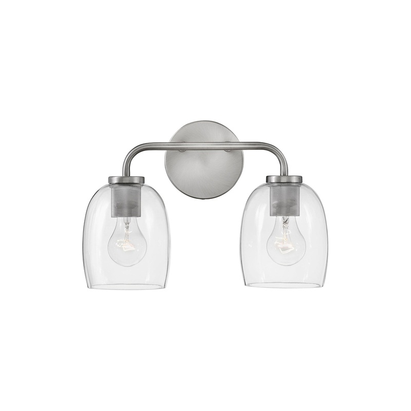 OverviewSoft curves highlight the Percy Vanity Wall Light from LARK as it delivers beautiful illumination. Clear, tulip-inspired glass surrounds two lights to bring a clean, airy look and feel perfect for master and guest quarters.Product Features:Collecti