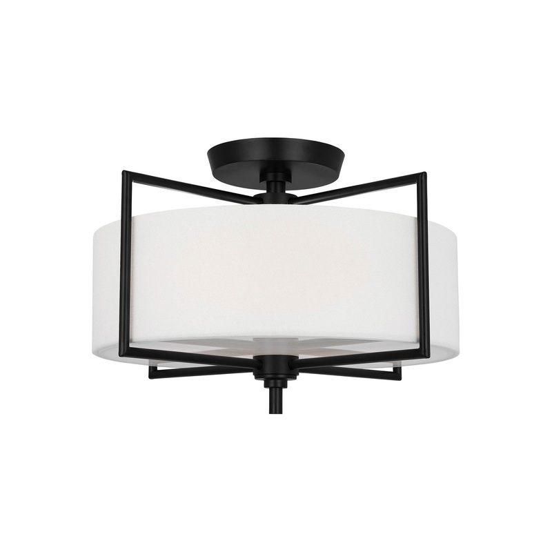OverviewAn outer cage plays up the sophisticated simplicity of the Perno Midcentury Semi Flush Mount Ceiling Light from Visual Comfort Studio. A round diffuser sits at its center, delivering glowing ambiance and true illumination suited to a variety of spa