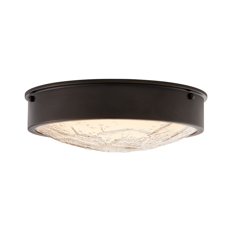 An artisan take on a pedestrian fixture design greets kitchens, hallways, and living areas with a bit of exquisite industrial-inspired glam. The Pietro LED Flush Mount Ceiling Light from Arteriors retains the iconic drum shade made of cool English bronze finish steel, placing the occasional rivet detail for good measure. Decadent molded clear glass adds an extraordinary sense of elegance as it delivers subtle lighting effects.