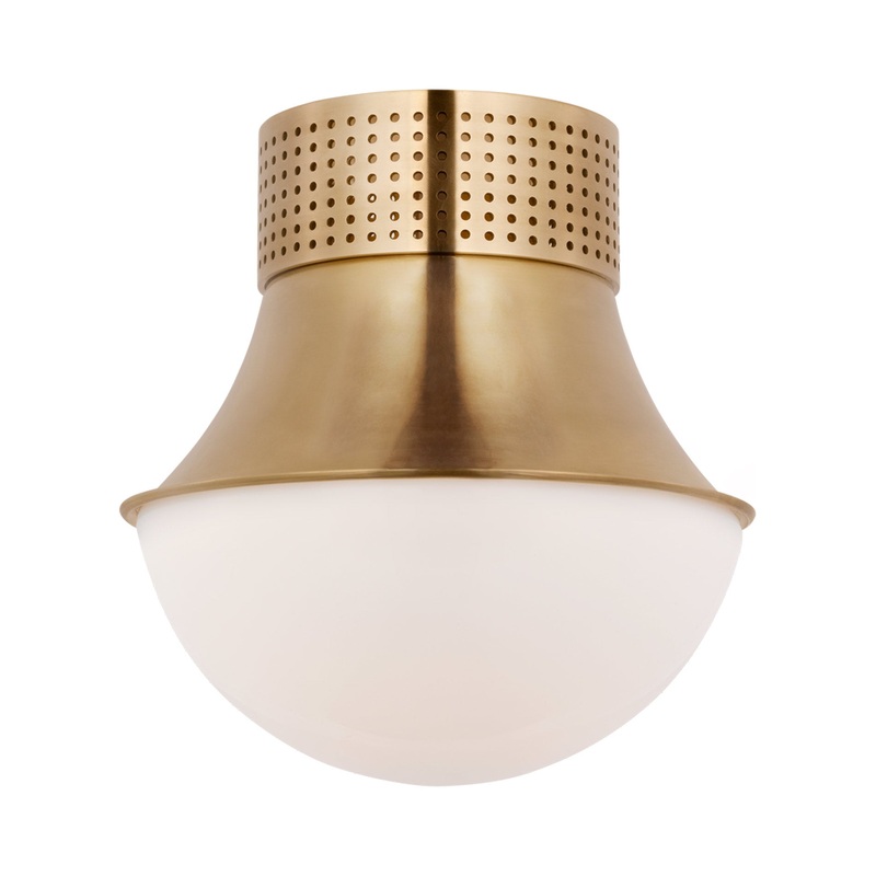 Bring a European influence to bold industrial ambiance as it flatters an interior light fixture. The Precision Round Flush Mount Ceiling Light from Visual Comfort Signature adopts classic metal construction with a romantic silhouette and addition of perforated metal layering. Classic and romantic influence follows a demure white glass dome shade, rounding out expert proportion.