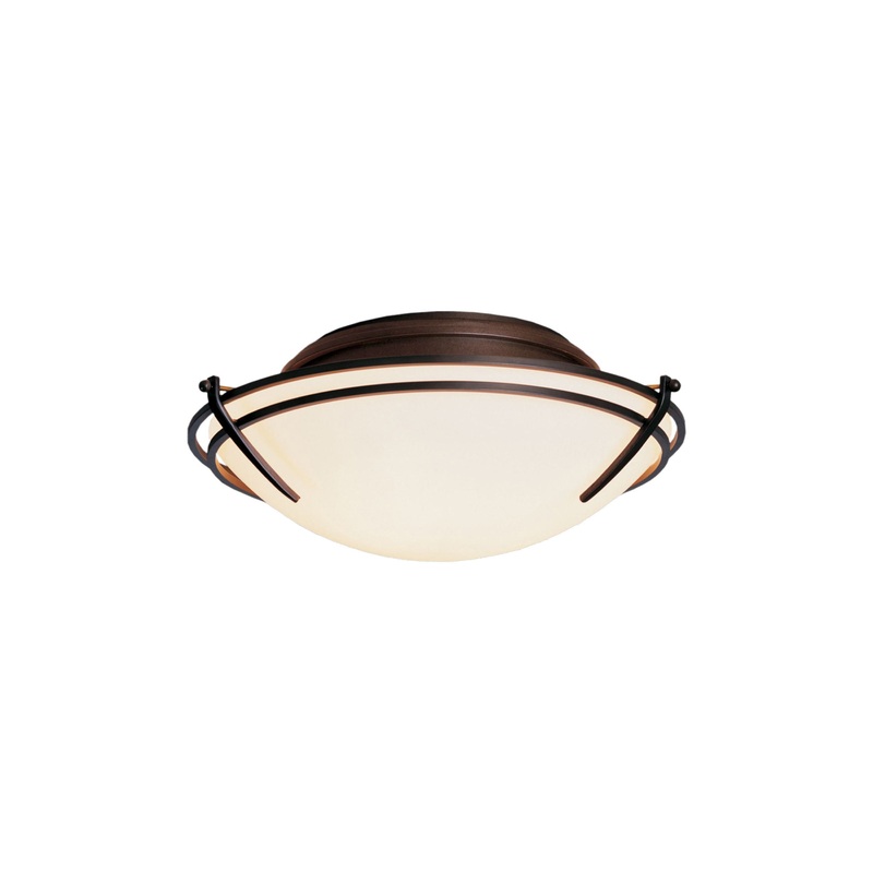OverviewSlim tines and concentric circles of forged metal decorate the opal glass bowl of the impressive Presidio Tryne Flush Mount Ceiling Light from Hubbardton Forge. Delivering soft, diffused illumination, this fixture is a gorgeous addition to an invit