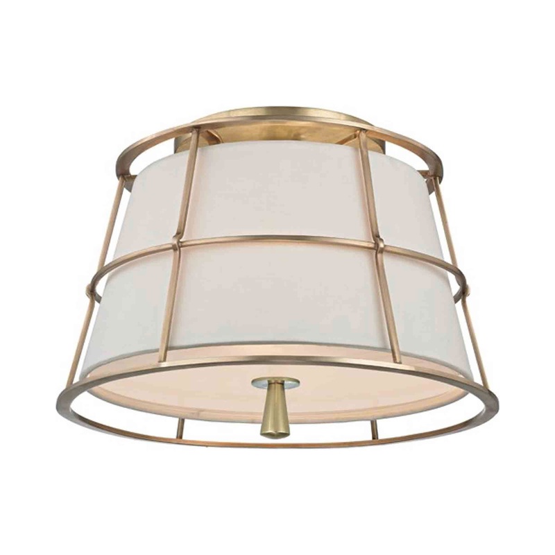 Savona Semi-Flush Mount Ceiling Mount from Hudson Valley Lighting borrows from charming farmhouse lore with a touch of industrial aesthetics, creating a light essence with a basket-like metal frame and fabric shade.