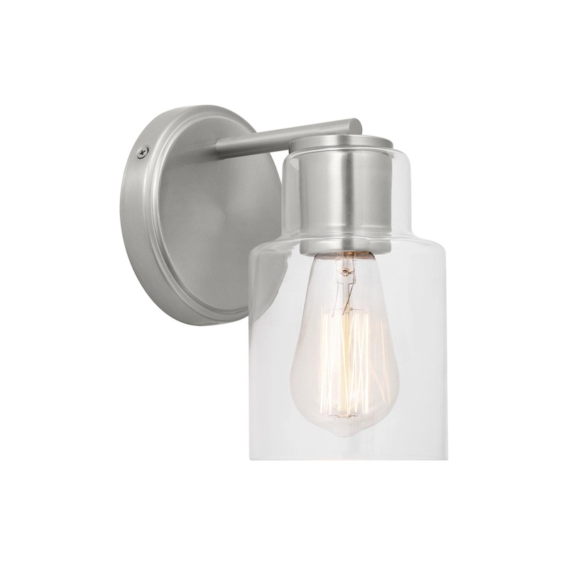 OverviewShapely clear glass on the Sayward Bath Wall Light from Visual Comfort Studio lends a peek at the bulbs within, perfect for the charm of a vintage style choice (not included). Graceful curves in the glass shade complement a round wall plate, with a