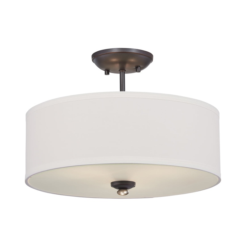 Structured and sensible in style, the Shadowglen 3-Light Semi Flush Mount Ceiling Light from Minka Lavery creates a versatile and tasteful narrative ideal for a casual yet tasteful living space. Simplicity is key in a fixture featuring bronze metal framing with gold highlights, contrasting with a sleek white fabric drum shade. Radiate ambient lighting through a diffuser and appreciate the iconic look of a fixture with both modern and retro design creds.