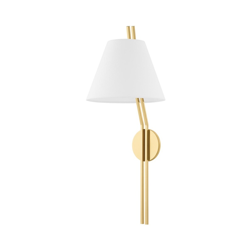 Sleek, slender silhouetting tells a tale of understated glam as the Shokan Wall Light from Hudson Valley Lighting makes its mark in a contemporary living space. The iconic pairing of metal and fabric creates a play on geometrics and clean lines with a double-stem design. This tailored light and its off-center shade create a stunning look worthy of placement in a special setting.