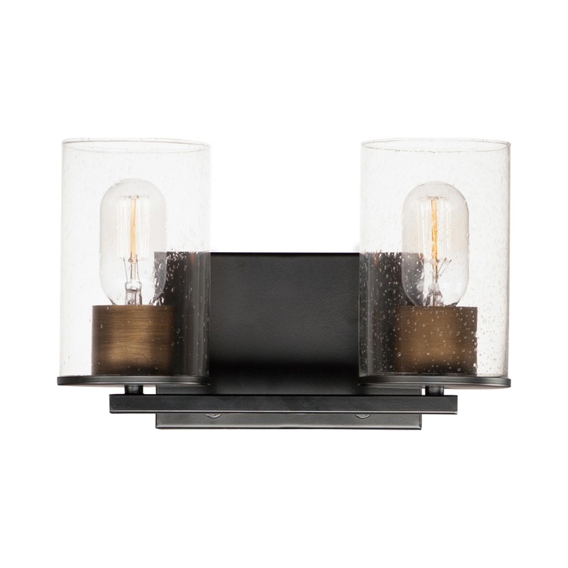 The striking flavor of simple sophistication sneaks in to influence an elegant bath space, highlighting an en suite or guest bath in style. The Sleek Vanity Wall Light from Maxim Lighting. Embrace an iconic blend of clear seeded glass cylinders positioned with care on a minimalist shelved metal backplate. A candlelight motif creates romance in a custom bathroom.
