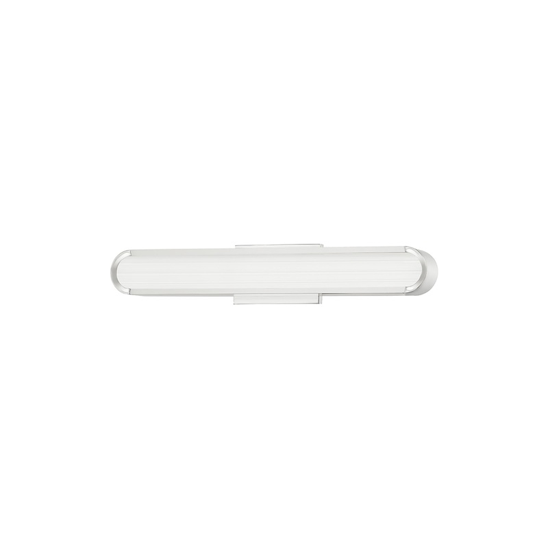 The Starkey LED Bath Vanity Light from Hudson Valley Lighting emphasizes the inescapable design power of minimalism. Vertically aligned, its long oval metal frame nestles a ribbed glass front panel filtering ambient lighting in a master or guest bath suite. Embrace the introduction of glam into an essentially simple design.