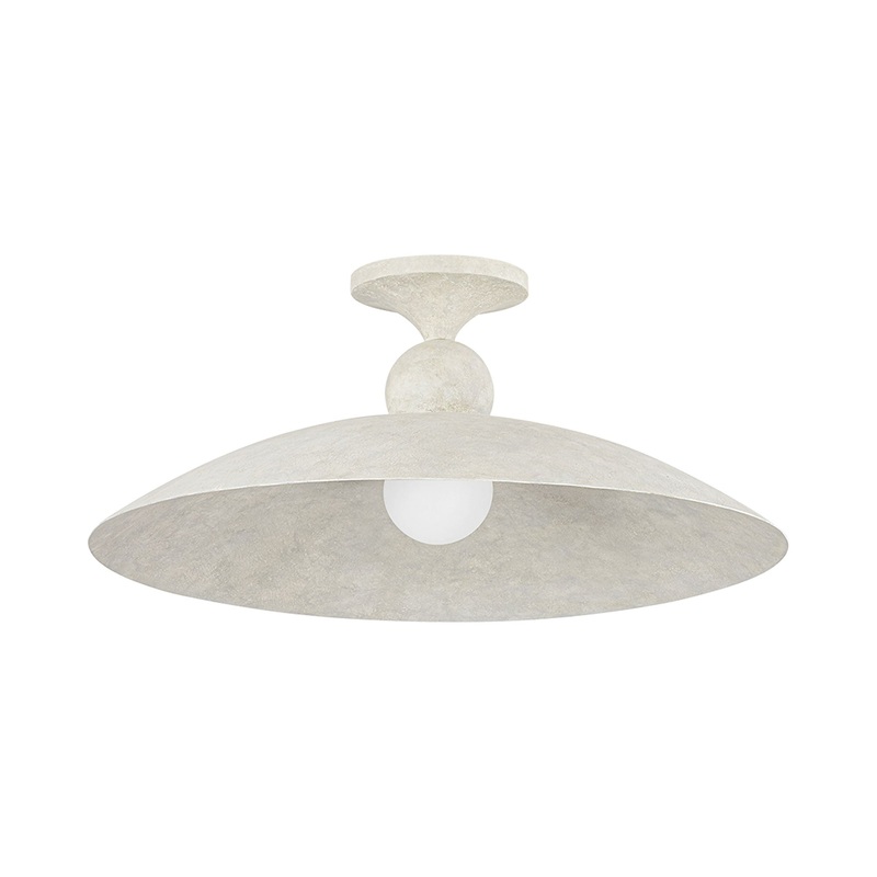 A chic and simple design lends itself to exotic glam as the Teelin Semi-Flush Mount Ceiling Light from Hudson Valley Lighting is not only versatile with respect to palette, but fittingly created for both modern and transitional settings. A chalice silhouette with charming accents calls out its limewash plaster finish, textural and sculptural. There’s a level of rustic beauty in a fixture with a concealed socket focusing allowing the light to stand on its own.