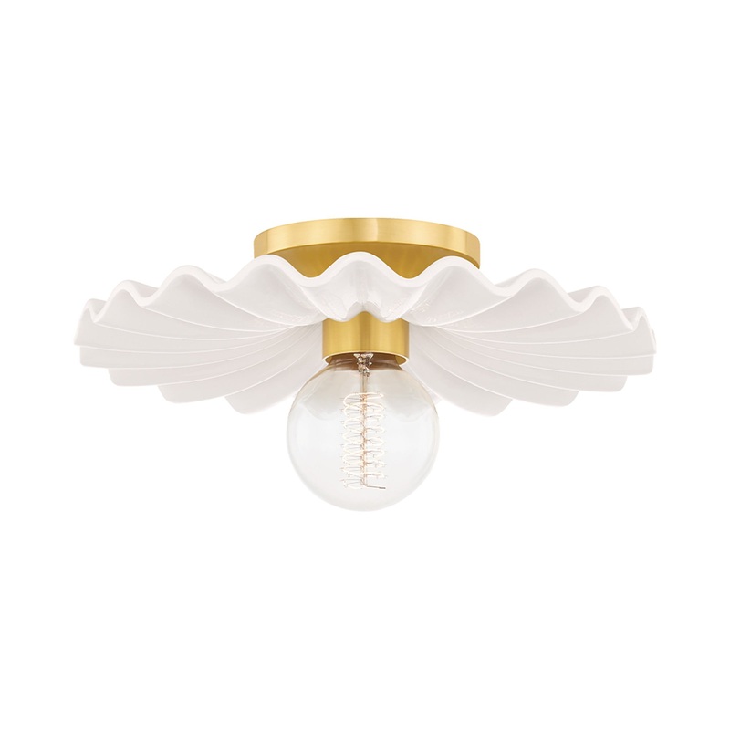 Take Tinsley for a twirl! Wrought with feminine design details, Tinsley’s standout is her pleated ceramic collar. Finished in a glossy white finish, the delicate plate is accentuated by aged brass and glass.