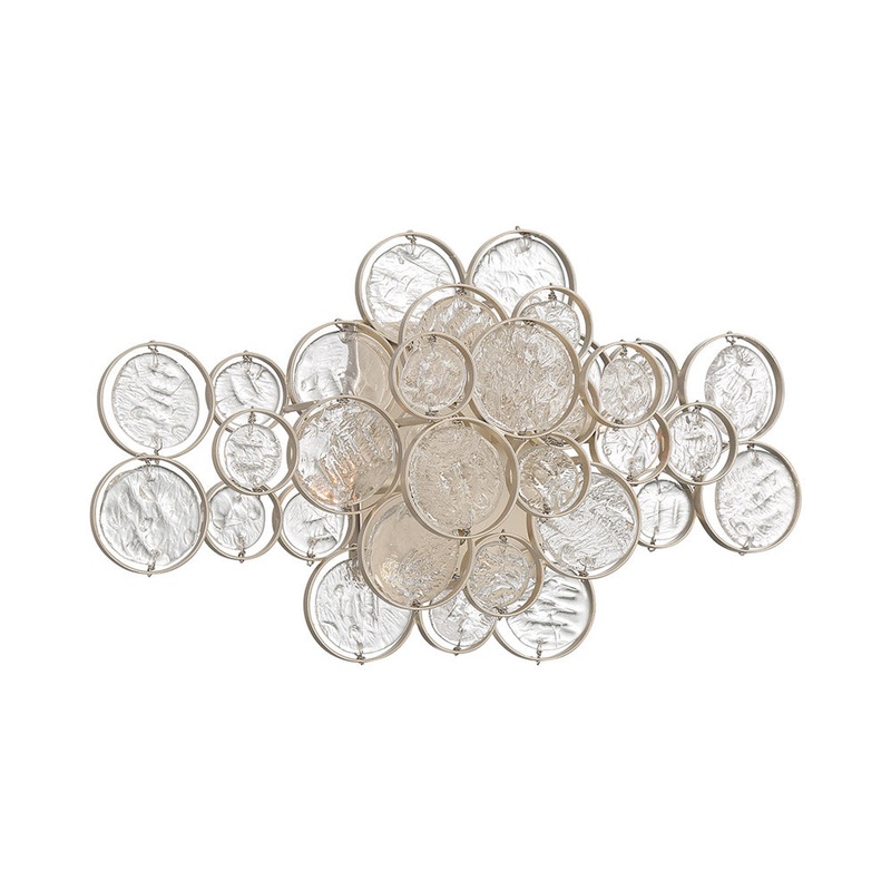 Hand-pressed, hand-strung glass wafers cluster into a delightful grouping with an abundance of fine artistry and deliver soft, glowing ambient illumination in a custom modern space. Tempting delicacy and sleek metal framing offers an eye-catching aesthetic to the Trento Vanity Wall Light from Eurofase. Texturizing offers sleek filtered lighting effects, transforming this exquisite fixture into a primary art form.