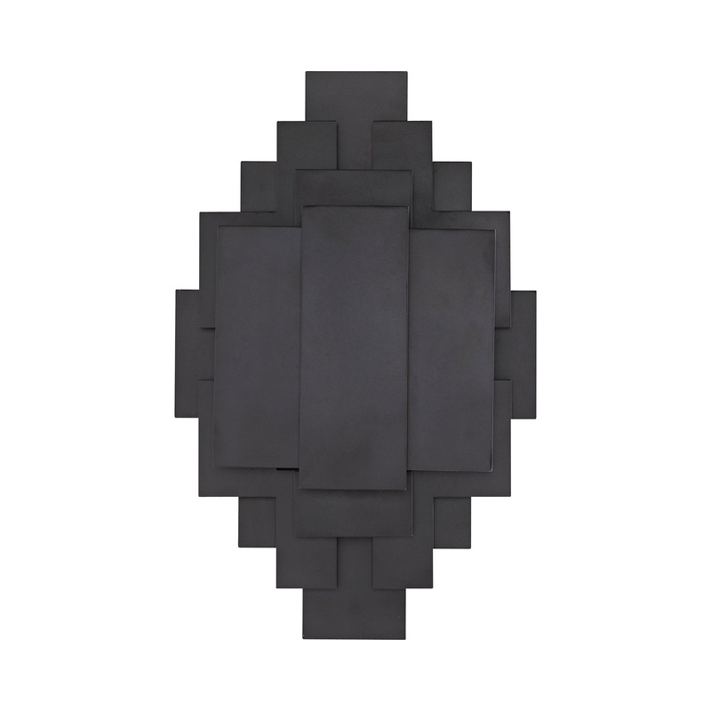 Meeting the definition of exotic style, the Trinidad Wall Light from Arteriors adds a new flavor of design to a bold modern space. A kickback to 1950s brutalist movement, this fixture blends purposely arranged layers of rectangles made of hand-cut iron with a sheen wax finish, all welded together to freeze motion. This statement-making sconce serves as its own striking dcor piece as it allows glowing light to escape.