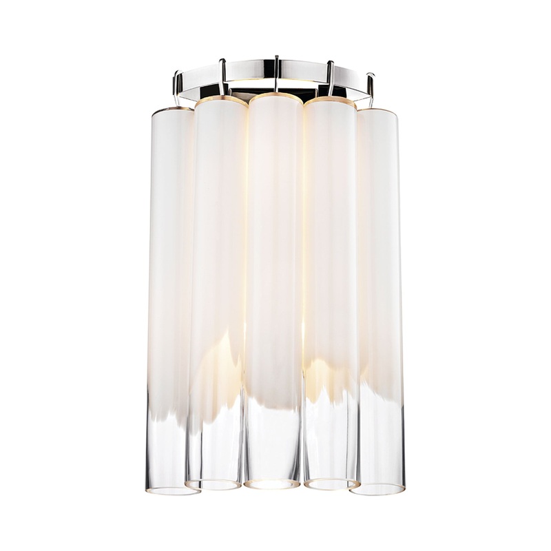 Artistry in its purest iteration brings a delightful look of glam to modern spaces. Create elegant illumination with the Tyrell Wall Light from Hudson Valley Lighting, admiring its dangling tubes made of white and clear glass. A sensation of icy ambiance joins polished nickel framing to assemble an extraordinary light source.