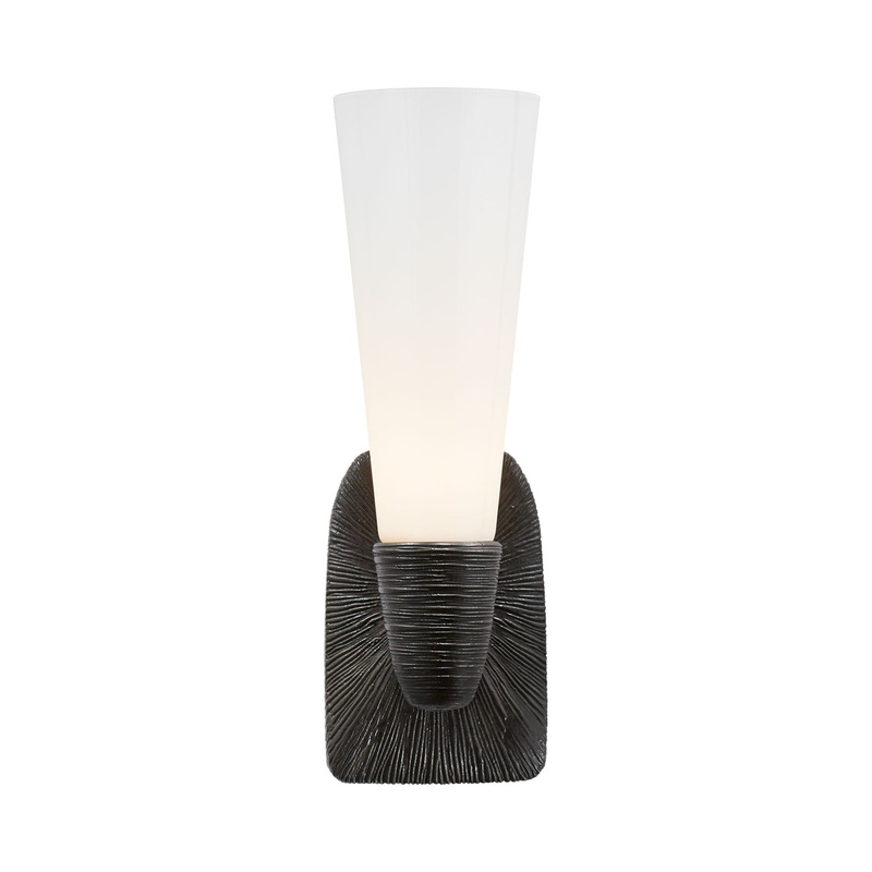 Fine art taps into an exotic vibe to produce a light fixture that lifts the sophistication of any space. Texturized effects create impact to the Utopia Bath Wall Light from Visual Comfort Signature, a decadent wall sconce blending etched metal and sleek shaping with a decadent white glass shade, forming a balanced silhouette.