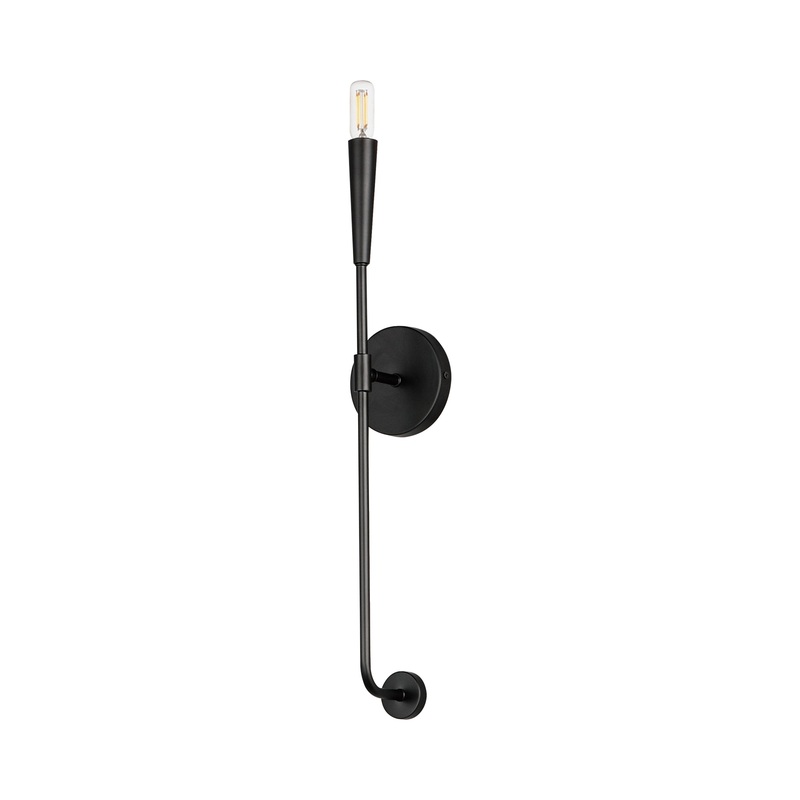 OverviewRomantically tapered, the silhouette of this Vela Bath Wall Light from Maxim Lighting plays on an elongated linear style with subtle curving. Steel construction crafts a slender stem affixed in two places to a wall, as a cylinder socket adds balanc