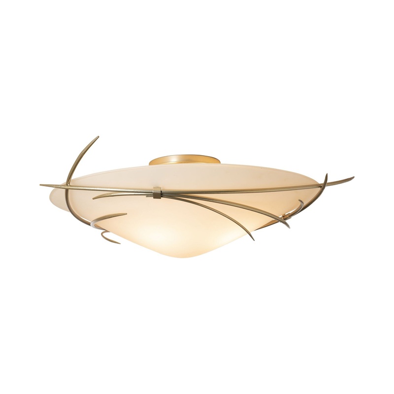 Blending modern function and artistry, the Wisp Semi Flush Mount Ceiling Light from Hubbardton Forge pairs a teardrop bowl with slender shards of forged metal to create a light, airy ambiance. A charming choice for a welcoming, earthy bedroom or home office.