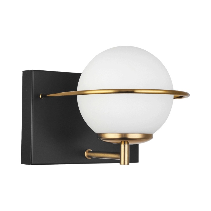 OverviewSpace-age influences and minimalist modern vibes come through in the elegantly designed WS1002 Bath Wall Light from Vinci Lighting. Designed with a white opal glass globe secured by aged brass accents such as a slim railing, this energy-efficient b
