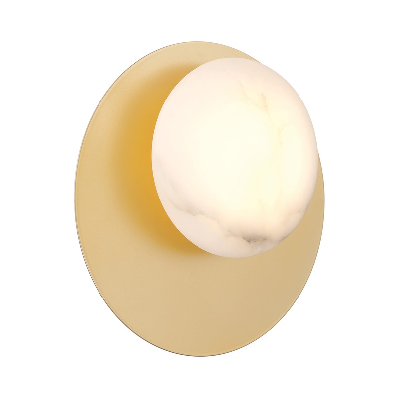An unmistakable iteration of jeweled elegance shapes the Zill LED Wall Light from Minka Lavery, creating an unexpected upgrade to minimalism. Alabaster creates a dimensional oval shade, adding organic style to a fixture with an exquisite lily gold finish metal oval backplate.
